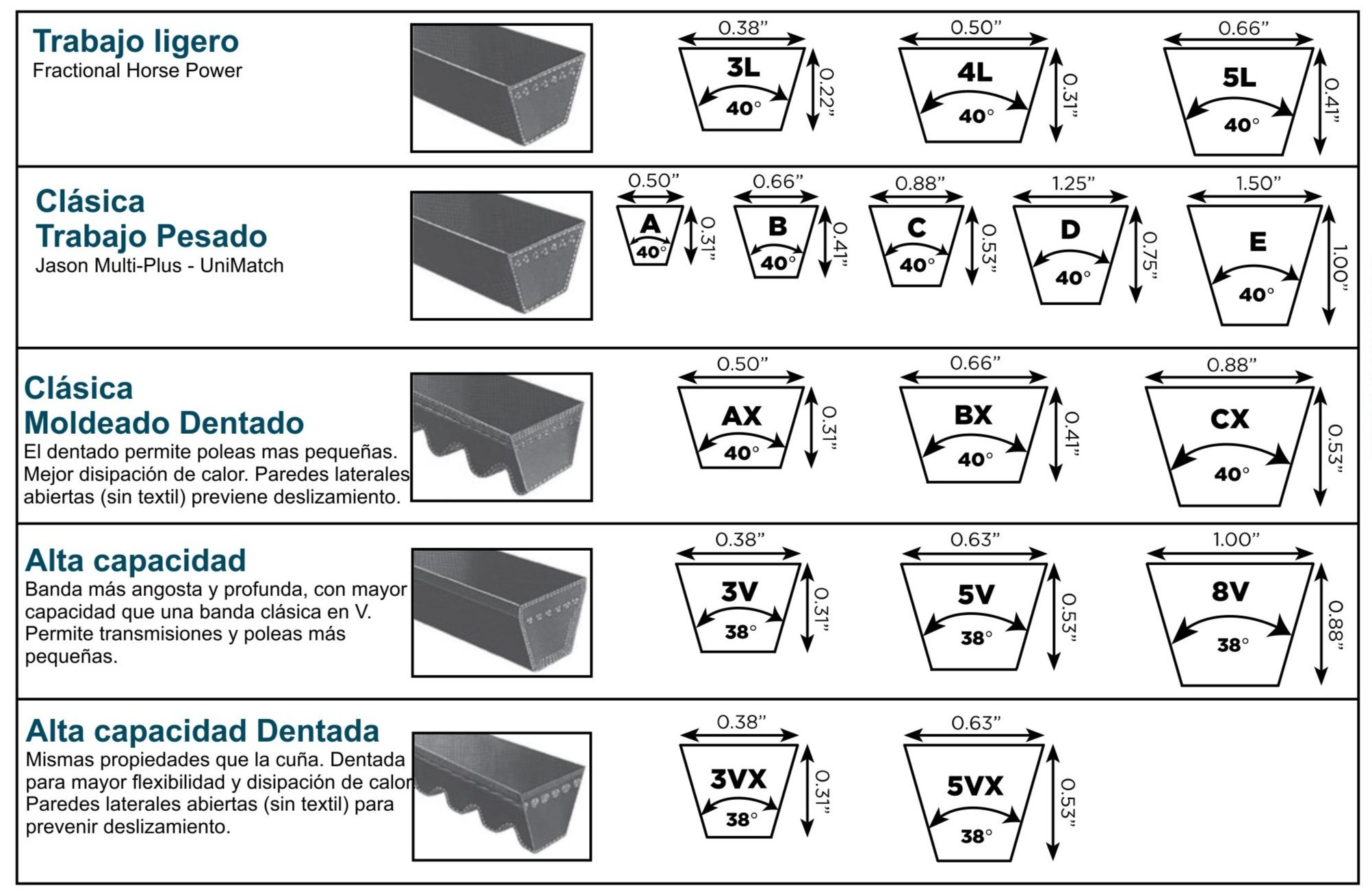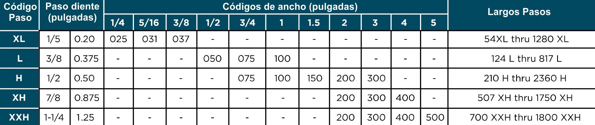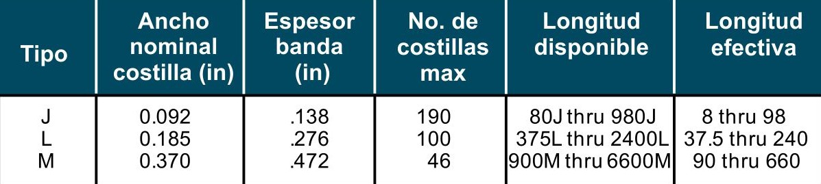 En la siguiente guía encontrarás las principales presentaciones disponibles desde trabajo ligero hasta alta capacidad dentada con sus respectivas dimensiones y perfiles, para seleccionar la opción que mejor se adapte a tu operación.